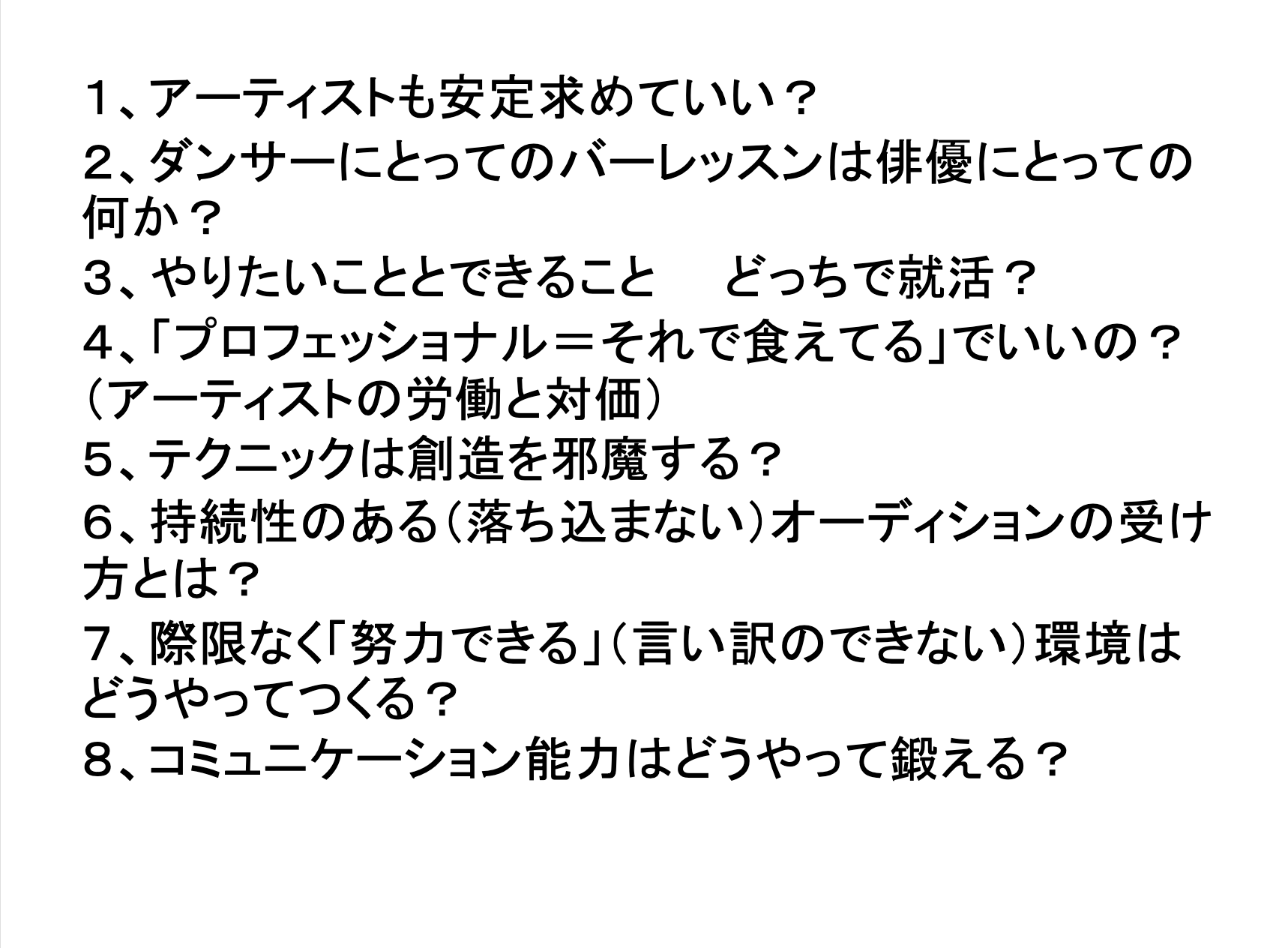 ドラマツルギーにおける検証が一切なされない、ビジュアル重視のセクシャルなシーンは、俳優、特に女優にとって非常に危険である。極端な例で言えば、男女の濡れ場があったとして、その行為をどこまで舞台の上で見せるか(もしくは、行為に及ぶか)ということは、再現芸術において根本的問題である。例えば、映画の場合、納得のいくシーンが撮れたらそこでおわるが、演劇の場合は、そこから始まる。稽古場では、「再生可能な」システムを探していくことも俳優の重要な仕事の一部である。脱げと言われたから、脱いで、抱き合えと言われたから、抱き合っていたら、連日に及ぶ公演で、精神的にも、肉体的にも、追い詰められることは間違いない。観客が、俳優に対し、「人前でよくあそこまでできるなあ」と思ってしまうようなシーンこそ、そのアクト(行為/演技)を水面下で支えられるような、徹底的なドラマツルギー的根拠が必要。俳優の仕事の半分以上は、創作過程に必要不可欠な「コミュニケーション」に凝縮されているといっても過言ではない。共演の俳優と時代背景も踏まえ、テキストを徹底的に読解し、その上で、最終的にマッサージよりも過激な性描写を提案した。演出家も、私たちの提案に対し、ディスカッションをひらいてくれたので、セクシュアルな「行為」そのものが浮き出てしまわないようなシーンを構築することに成功。ちなみに、古典戯曲において、女性の役は、主人公、つまり、男性の妻、もしくは、愛人であることがほとんど。必然的に、男性に付随するような役が女優に与えられる可能性が高くなる。この現実の中、女優は、俳優である以上に、女優であることを、意識していく必要があるのではないか。どんな美しさも醜さも消費されてはならない。